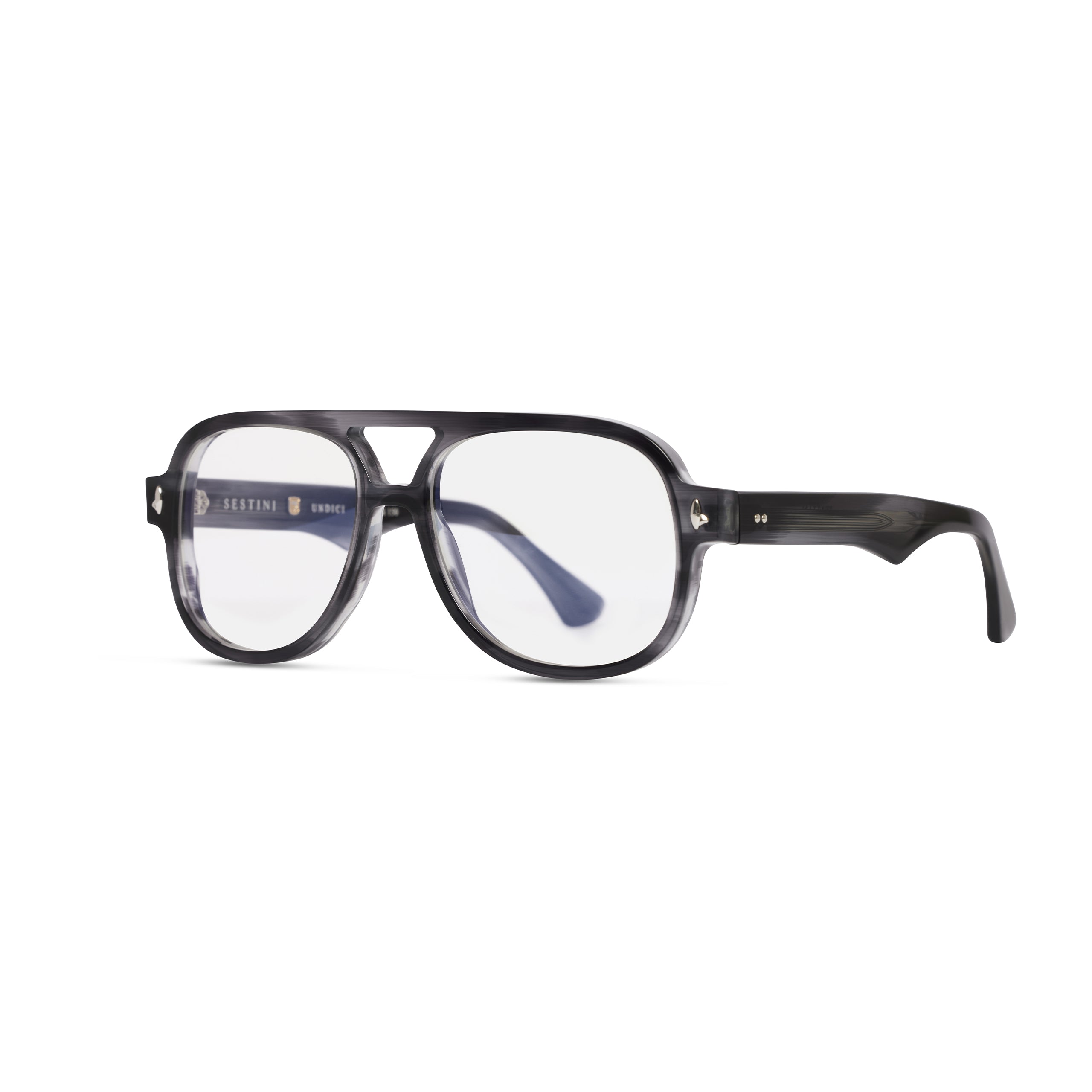 Make a lasting impression with UNDICI, a classic oversized aviator frame that combines strength and confidence. With its refined design and retro appeal, this style stands out in sophisticated colo...